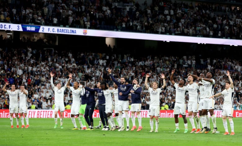Реал Мадрид победи Барселона с 3:2 в зрелищно "Ел Класико" на "Сантяго Бернабеу" от 32-ия кръг на испанската Ла Лига и вече с 11 точки на върха пред каталунците докосва рекордна 36-а шампионска титла. Каталунците взеха аванс с гол на Андреас Кристенсен (6). Винисиус Жуниор (18-дузпа) обаче изравни. Фермин Лопес (70) даде нов аванс на гостите, но малко след това Лукас Васкес (73) изравни с мощен удар, а в добавеното време Джуд Белингам (90+1) донесе успеха на домакините.
