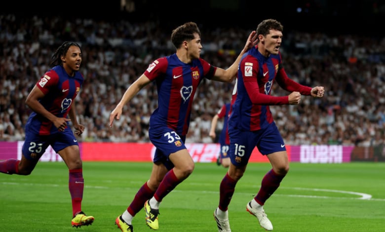 Мачът започна на високи обороти с положения и пред двете врати, а още в 6-ата минута датчанинът Андреас Кристенсен се извиси във въздуха, за да засече с глава центриране на далечната греда. Ударът на Кристенсен мина покрай тръгналия напред Лунин и се озова в мрежата за 0:1. В 14-ата минута Ламин Ямал направи отличен пробив в наказателното на мадридчани. Младокът се справи с Камавинга, а след това опита да завърши, но от много малък ъгъл не успя да преодолее стража на домакините, който спаси. Малко след това Лукас Васкес нахлу в наказателното на каталунците, след което се справи с Кубарси като смени посоката. Играчът на Реал Мадрид бе препънат и се стовари на земята, а съдията Сото Градо отсъди дузпа и Винисиус Жуниор изравни от бялата точка за 1:1.
