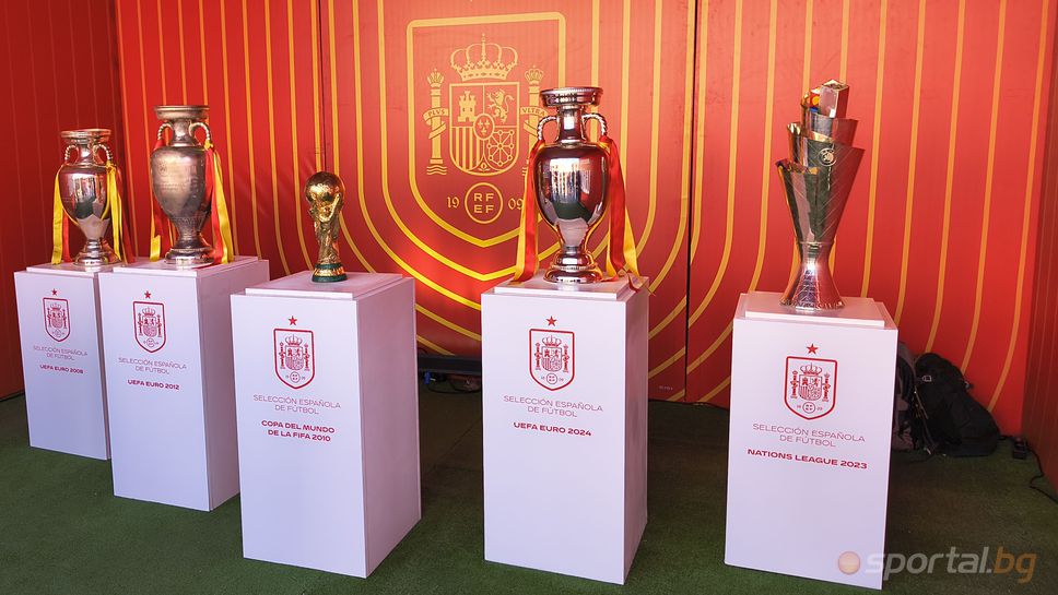 Привържениците можеха да се снимат до световната титла от 2010 г., европейските купи от 2008, 2012 и 2024 г., и трофея от Лига на нациите от 2023 г. Липсваше единствено отличието на Стария континент, спечелено от испанците през 1964 г., като организаторите не успяха да обяснят защо.