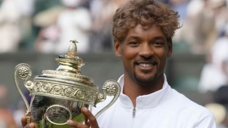 В Instagram "стори", актьорът "фотошопира" лицето си върху снимка на Синер, който държи трофея от Уимбълдън, и добави надпис: