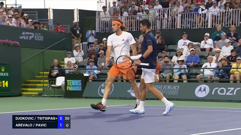 Novak Djokovic🇷🇸 y Stefanos Tsitsipas🇬🇷 derrotaron a Arévalo/Pavic 6-3 y 6-2 en la primera ronda de dobles de Indian Wells#TennisParadise